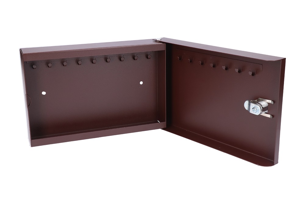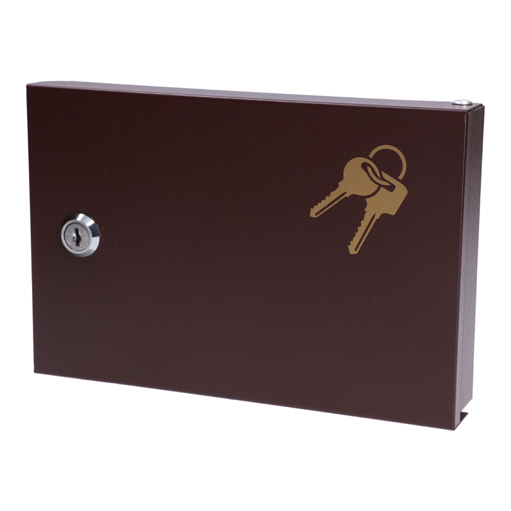 Ocelová skříňka na 16 klíčů, rozměr 225 x 150 x 45 mm (šířka x výška x hloubka), barva hnědá.