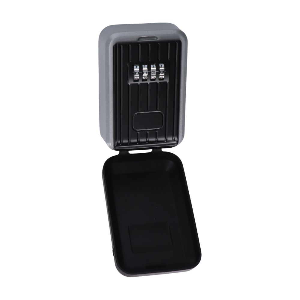 Schránka na klíče s kódovým zámkem, pryžový kryt proti zatečení, rozměry 125 x 85 x 43 mm.