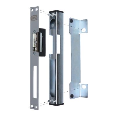 EZK315 - set - dorazová kazeta EZK310 (260 x 30 x 30 mm) + elektrický zámek EZ332 (s lištou, pamětí a odblokováním, napětí 8 - 14 V, proud AC/DC). Univerzální pro pravé i levé dveře.