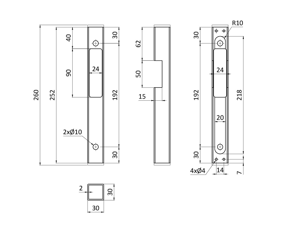EZKD500 - set - dorazová kazeta EZK309 pozinkovaná (260 x 30 x 30 mm) + elektrický zámek EZD332 (s l...Ukaž celý popis >