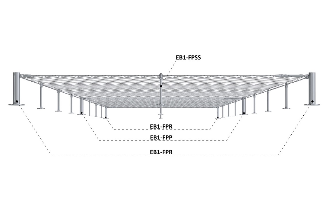 *K setu fasádní lankové sítě je třeba dokoupit kotevní materiál pro příruby EB1-FPP a EB1-FPR.