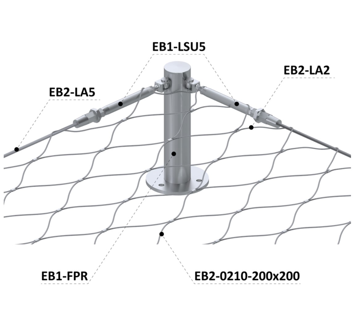 *K setu fasádní lankové sítě je třeba dokoupit kotevní materiál pro příruby EB1-FPP a EB1-FPR.