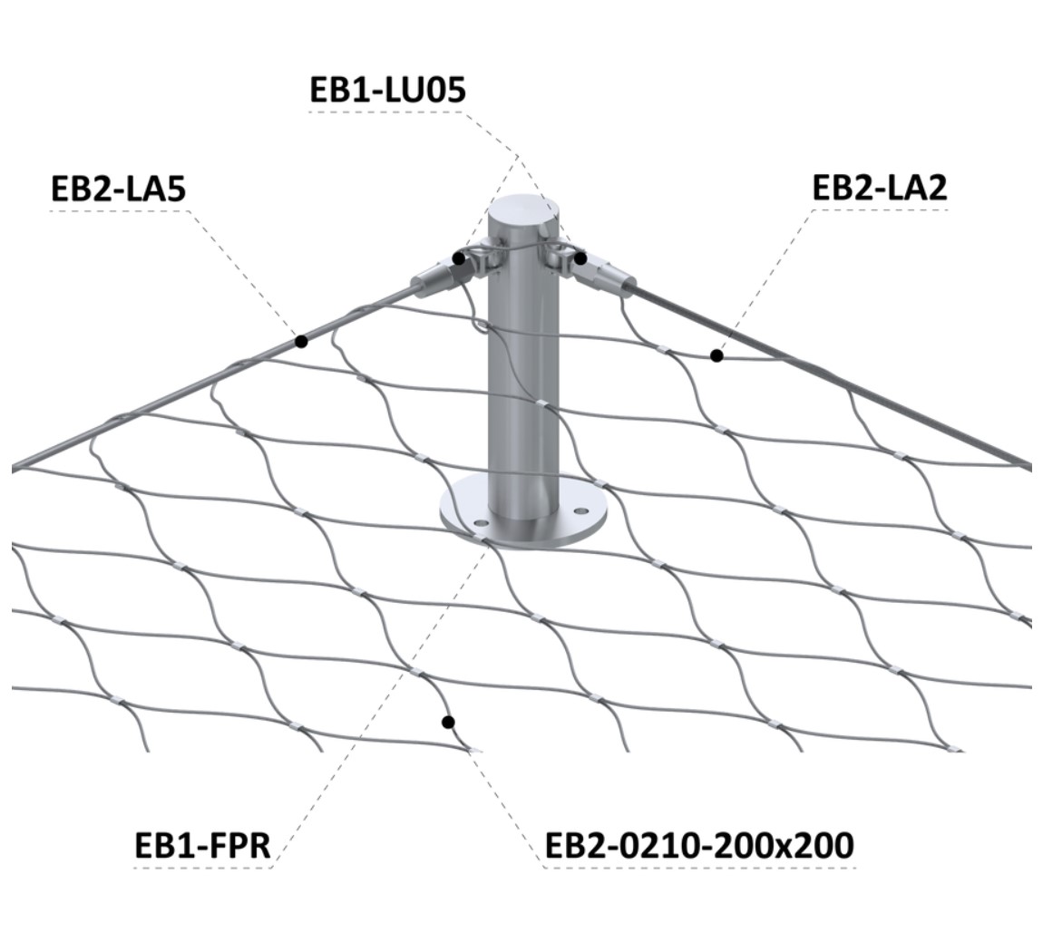 *K setu fasádní lankové sítě je třeba dokoupit kotevní materiál pro příruby EB1-FPP a EB1-FPR.