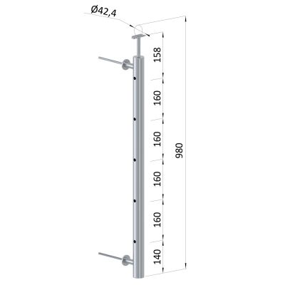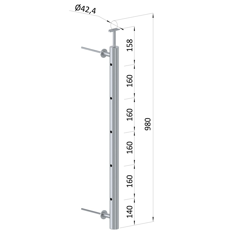 sloupek na francouzský balkon, boční kotvení, 5 děrový, průchozí