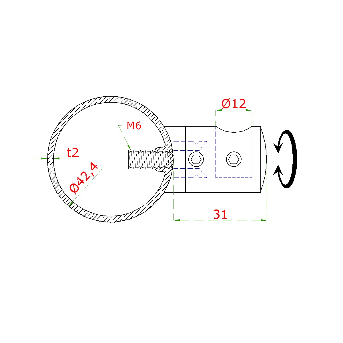 • vrch pevný (držák madla bez nastavení sklonu) s ukončením na trubku ø 42,4 mm