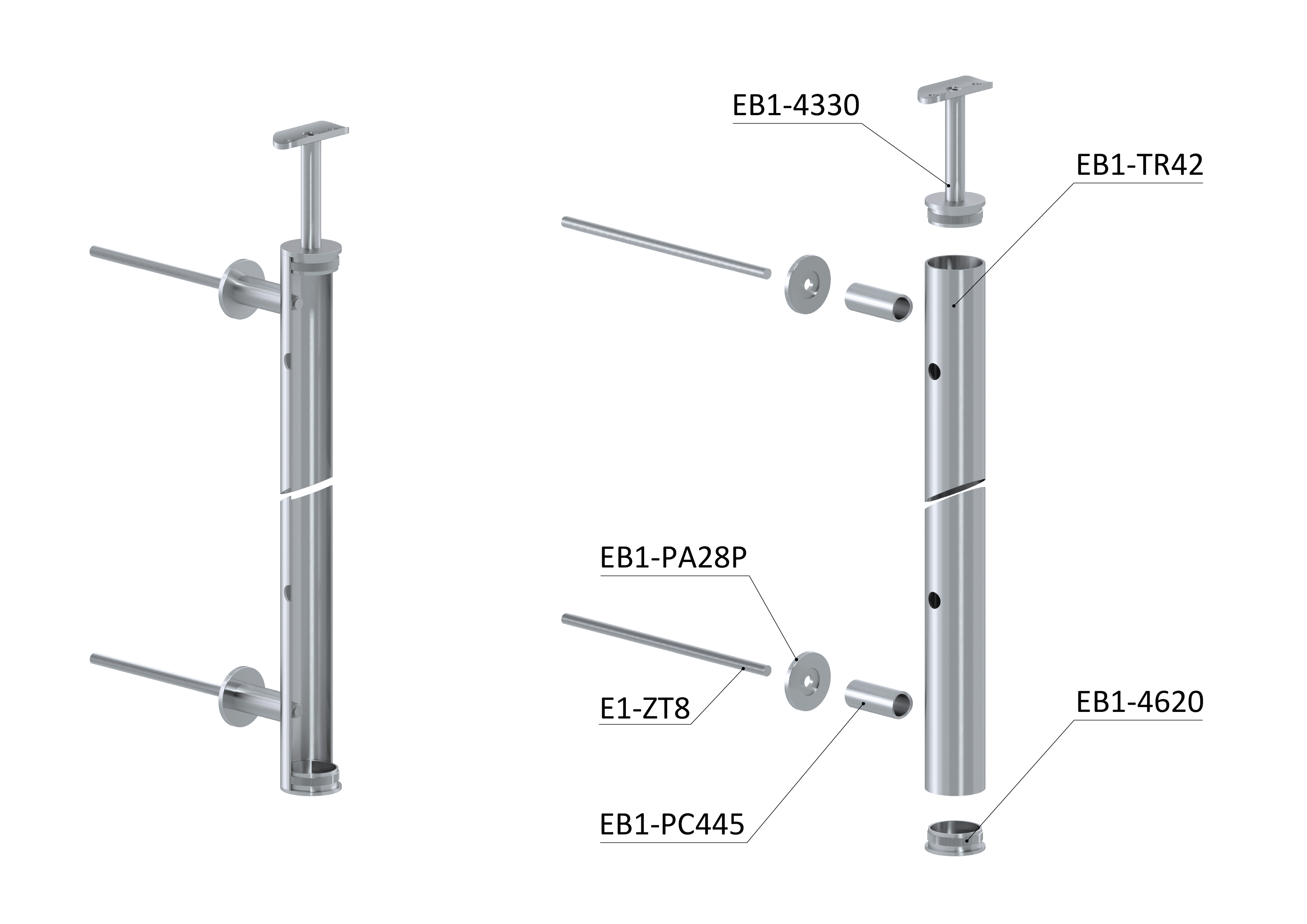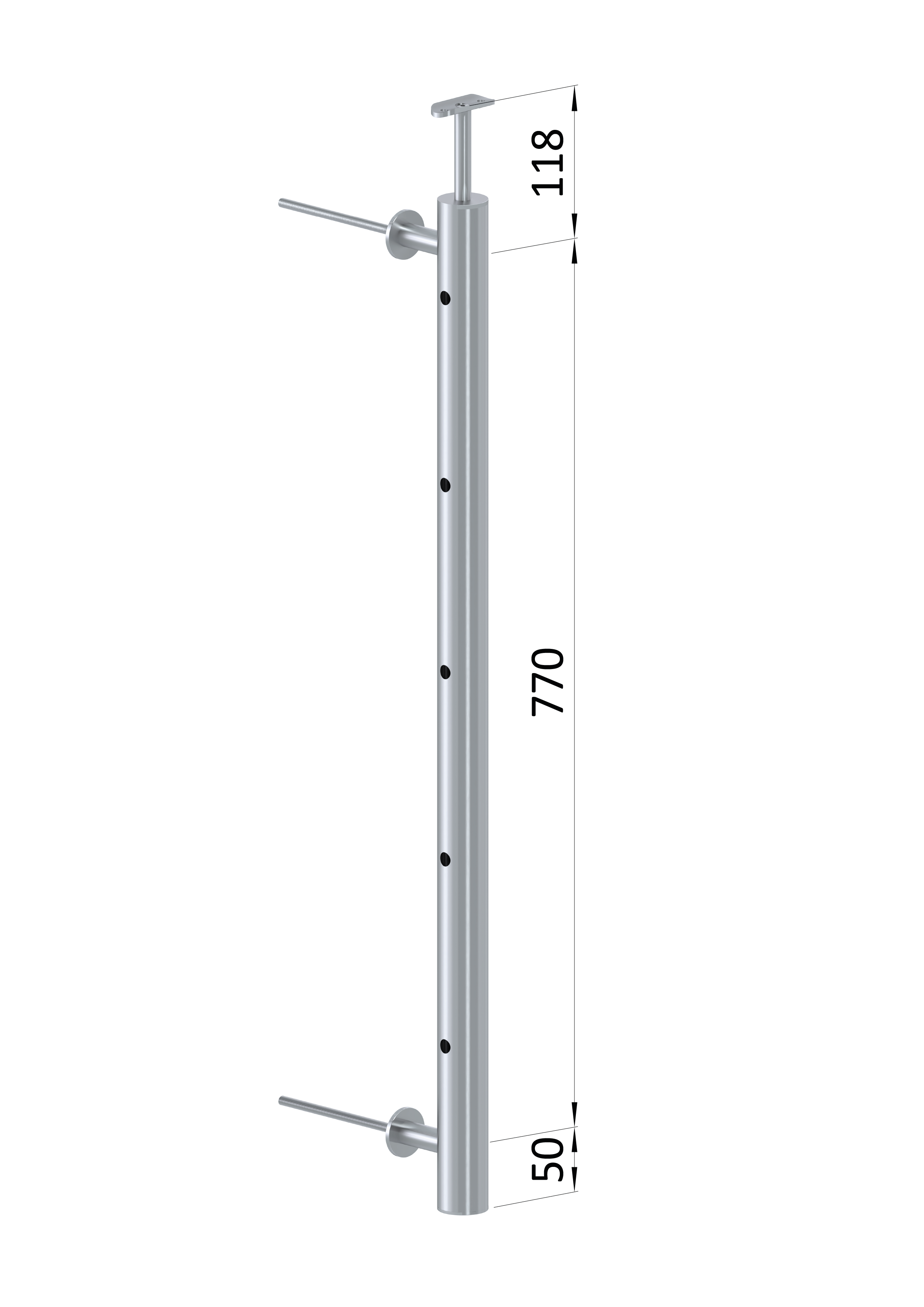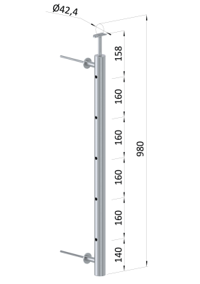 Nerezový kulatý sloupek na francouzský balkon, průměr sloupku 42,4 mm, tl. stěny 2 mm. Materiál broušená nerez K320/AISI304. Sloupek je kompletní se všemi potřebnými komponenty - součástí sloupku je pevný držák kulatého madla a 2 kotevní trny. Sloupek se kotví na zeď - z čela na fasádu. Po namontování madla je celková výška sloupku 980 mm.