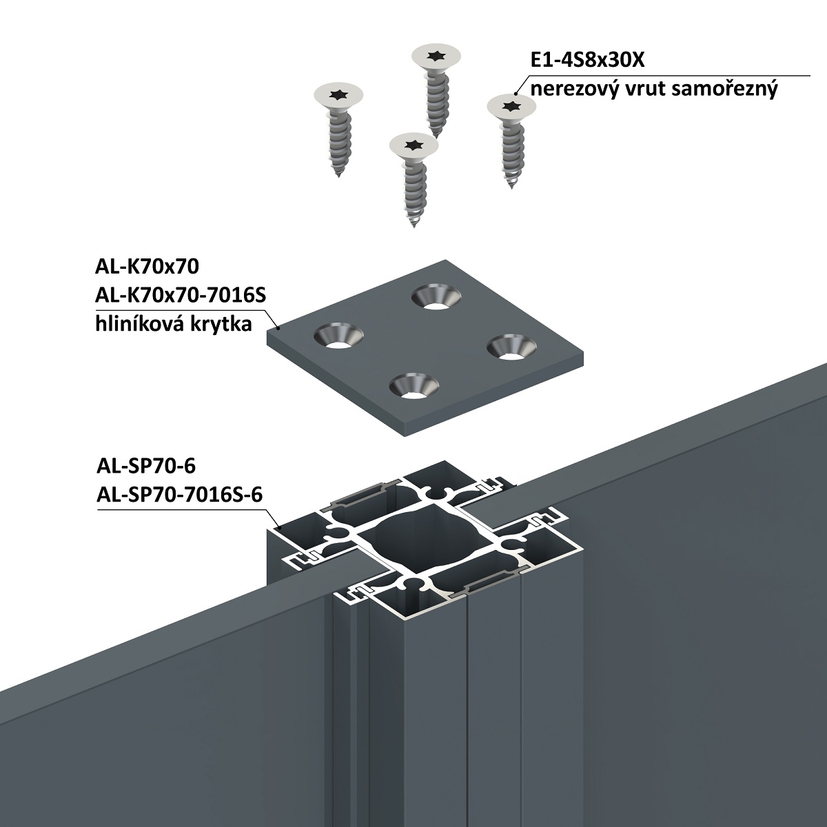 Sloupkový profil 70 x 70 mm určený pro stavbu hliníkových plotů, zástěn a výplňových systémů. Materi...Ukaž celý popis >