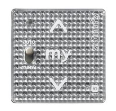 Somfy Smoove A/M Silver Shine - dotykový nástěnný dálkový ovladač stříbrné barvy pro ovládání jednoho io pohonu (io přijímače) nebo skupiny io pohonů (io přijímačů) s možností přepínání roletového a žaluziového režimu s volbou automatického nebo manuálního režimu.