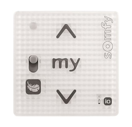 Somfy Smoove RS 100 io Pure Shine - dotykový nástěnný dálkový ovladač bílé barvy pro ovládání jednoho io pohonu (io přijímače) nebo skupiny io pohonů (io přijímačů) s možností režimu nerušit.
