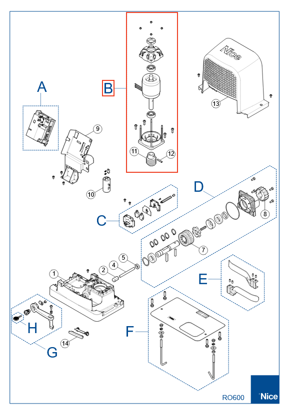 SPAMG602D00A kit elektromotoru s pastorkem pro pohon Nice ROBO RO600.