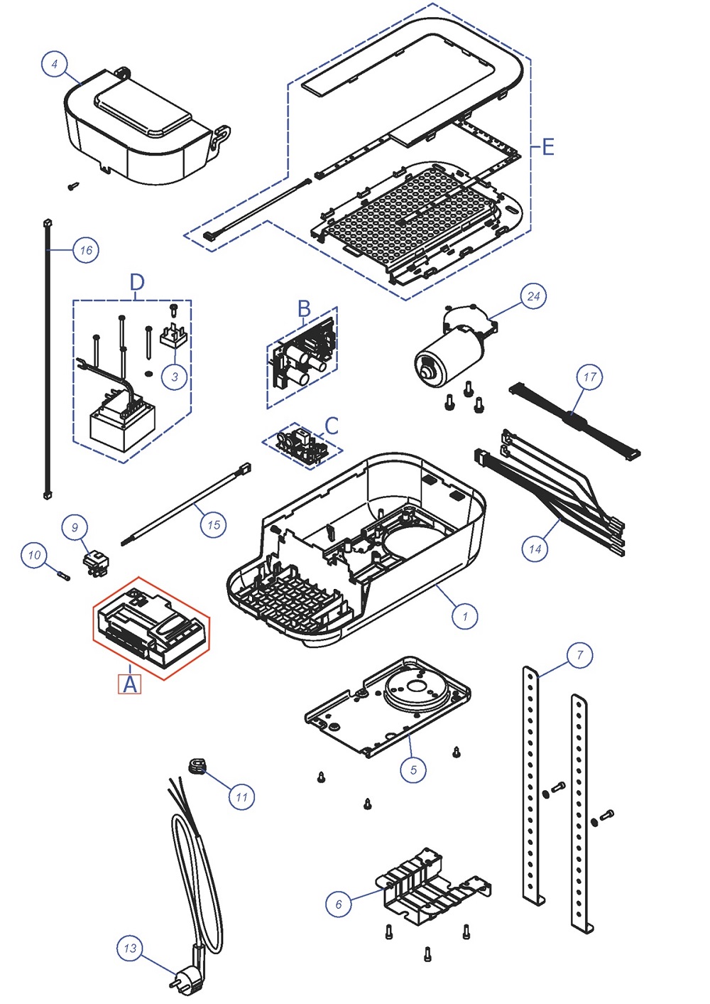 SPMCU1 - řídící jednotka Nice pro bránové pohony RBS400, RBS600 a pohon garážových vrat SPR800. Řídící jednotka má vestavěný Wi-Fi modul a integrovaný přijímač obousměrné rádiové komunikace. Další funkce získává díky rozšiřujícím modulům MLAE.