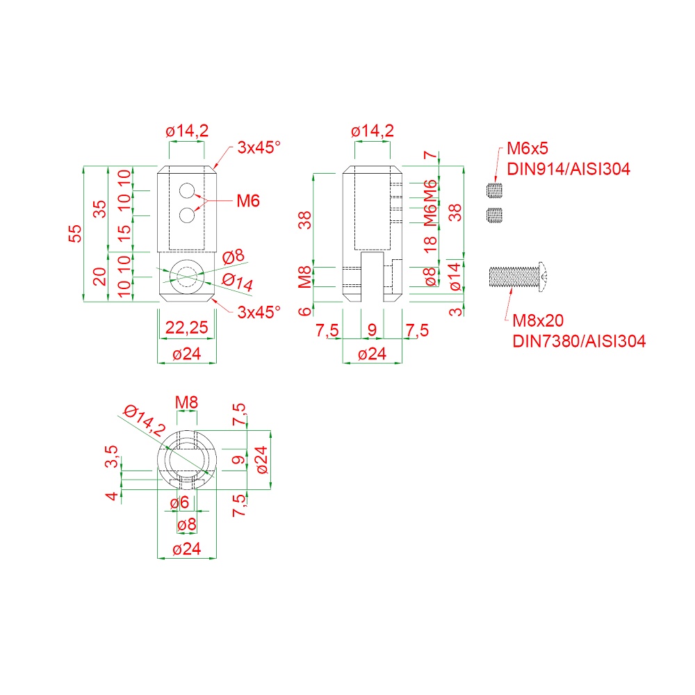 Spodek držáku madla na vypalované sloupky k držákům EB1-1495 a EB1-1491, broušená nerez K320 /AISI30...Ukaž celý popis >