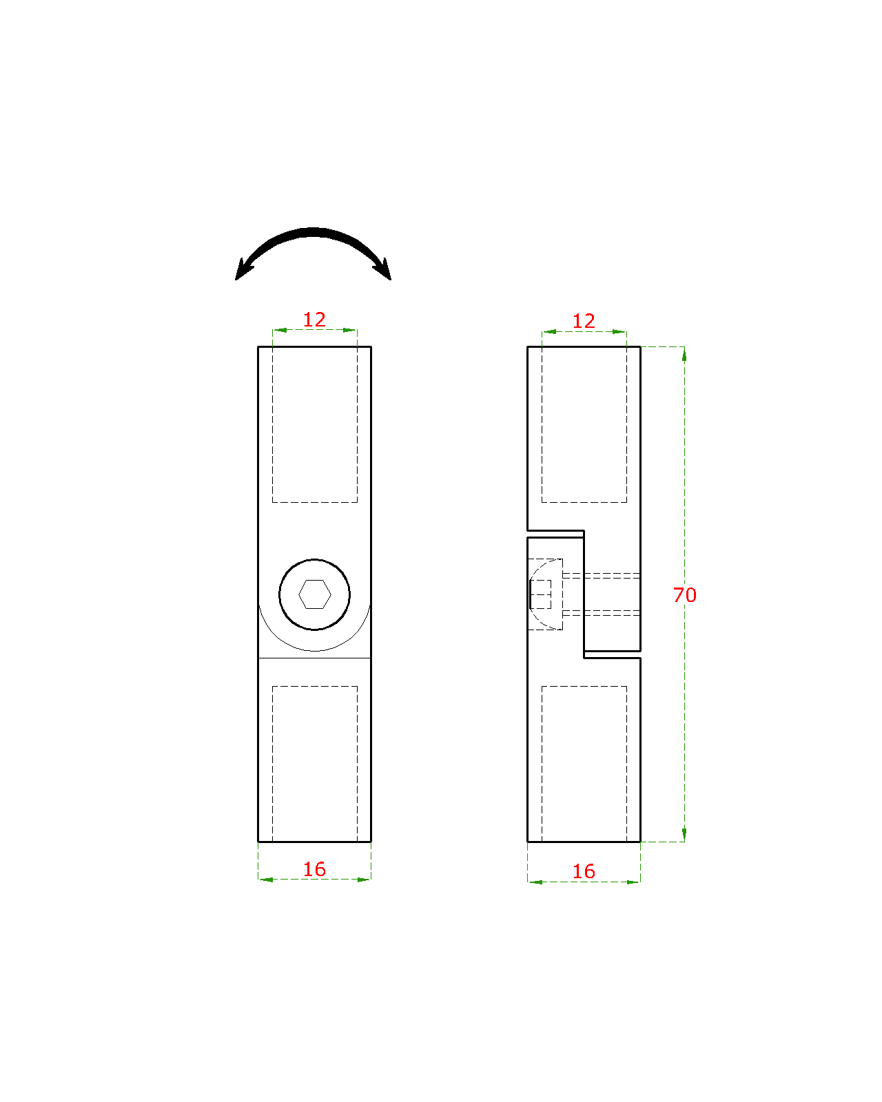EB1-J132 - spoj s kloubem na tyč 12 x 12 mm, délka 70 mm, nastavitelný sklon 0°- 100°, broušená nere...Ukaž celý popis >