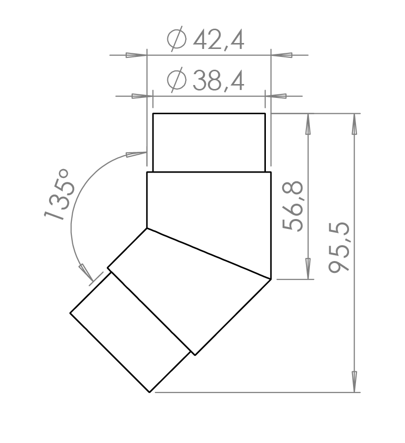 EB2-4504 - spojka - přechod 45° na madlo ø 42,4 mm, materiál broušená nerez K320/AISI316.