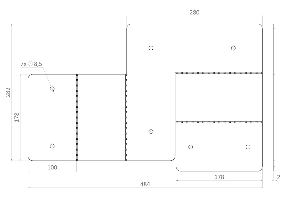 Dodání: Spojky jsou vypálené laserem a následně pozinkované. Dodáváme je v plochém (neohnutém) stavu - před použitím je ohněte podle nákresu.