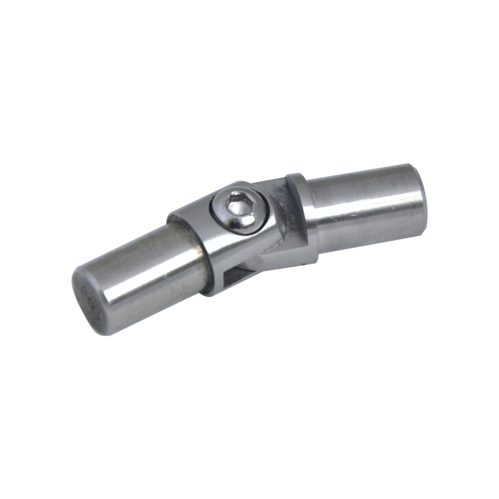 EB1-1605 - spoj s kloubem na trubku ø 12 mm, nastavení sklonu 0°- 100°, plný materiál, broušená nerez K320/AISI304.