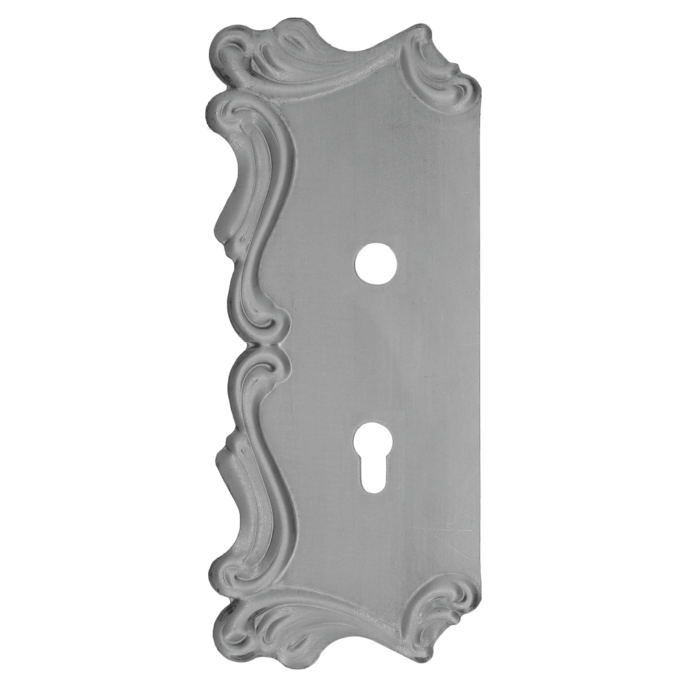 KZ061/85 - štítek kovaný s otvory, rozměr 315 x 135 x 3 mm, otvor pro kliku ø 20 mm, rozteč 85 mm, l...Ukaž celý popis >