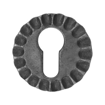 KZ015 - štítek k zámkové vložce FAB kovaný, zdobený, ø 53 mm, otvor ø 19 mm, tl. 4 mm.