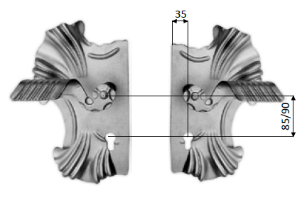 KZL15P - štítek ozdobný s klikou 285 x 155 x 2 mm, rozteč 90 mm, pravý. Vhodný zámek je např. ZM85/50.