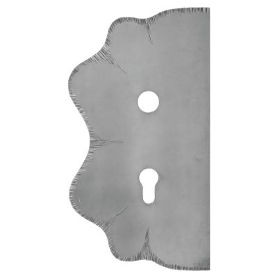 KZ034VL - štítek kovaný vhodný pro posuvné brány, s otvory, 250 x 135 x 3 mm, rozteč 72 mm, válcovaný, levý, otvor pro kliku ø 19,5 mm. Ideálně pro profil 40 x 40 mm, lze použít zámek pro posuvné brány.