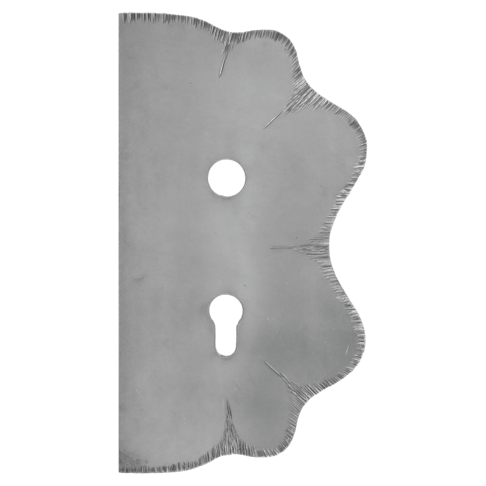 KZ034VP - štítek kovaný vhodný pro posuvné brány, s otvory, 250 x 135 x 3 mm, rozteč 72 mm, válcovaný, pravý, otvor pro kliku ø 19,5 mm. Ideálně pro profil 40 x 40 mm, lze použít zámek pro posuvné brány.