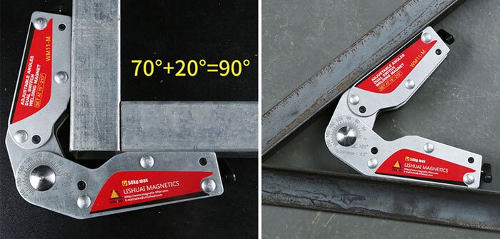 Polohovatelný svařovací magnet s neodymovými magnety, které zajišťují pevné uchycení i těžších kovových dílů. Povrchová úprava z pozinku zvyšuje jeho odolnosti vůči opotřebení a korozi. Nastavení úhlu 15° - 210° se provádí pomocí stupnice přímo na těle magnetu a šestihranného klíče, který je součástí balení. Klíč lze přicvaknout přímo k magnetu pro snadé uložení a rychlý přístup během práce.