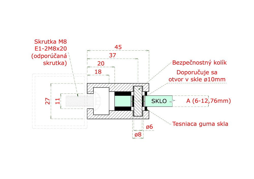 E-Z015 - svorka skla vhodná pro výplň tl. 6 - 12,76 mm, rozměr 45 x 45 x 27 mm (šířka x výška x hloubka), uchycení na rovnou plochu, materiál ZAMAK - slitina Al, Zn - bez povrchové úpravy (možnost lakování). Balení neobsahuje gumové těsnění.