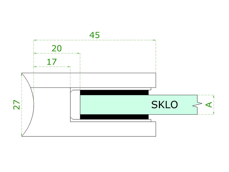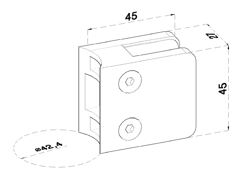 E-Z415 - svorka skla vhodná pro výplň tl. 8 - 10,76 mm, rozměr 50 x 40 x 26 mm (šířka x výška x hloubka), uchycení na sloupek ø 42,4 mm, materiál ZAMAK - slitina Al, Zn. Balení neobsahuje gumové těsnění.