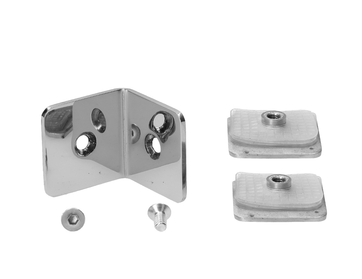 Svorka skla na skleněný dveřní systém mezi sklo a sklo 90°, rozměr 45 x 45 mm, pro tloušťku skla 8 - 10 mm, materiál leštěná nerez AISI304.