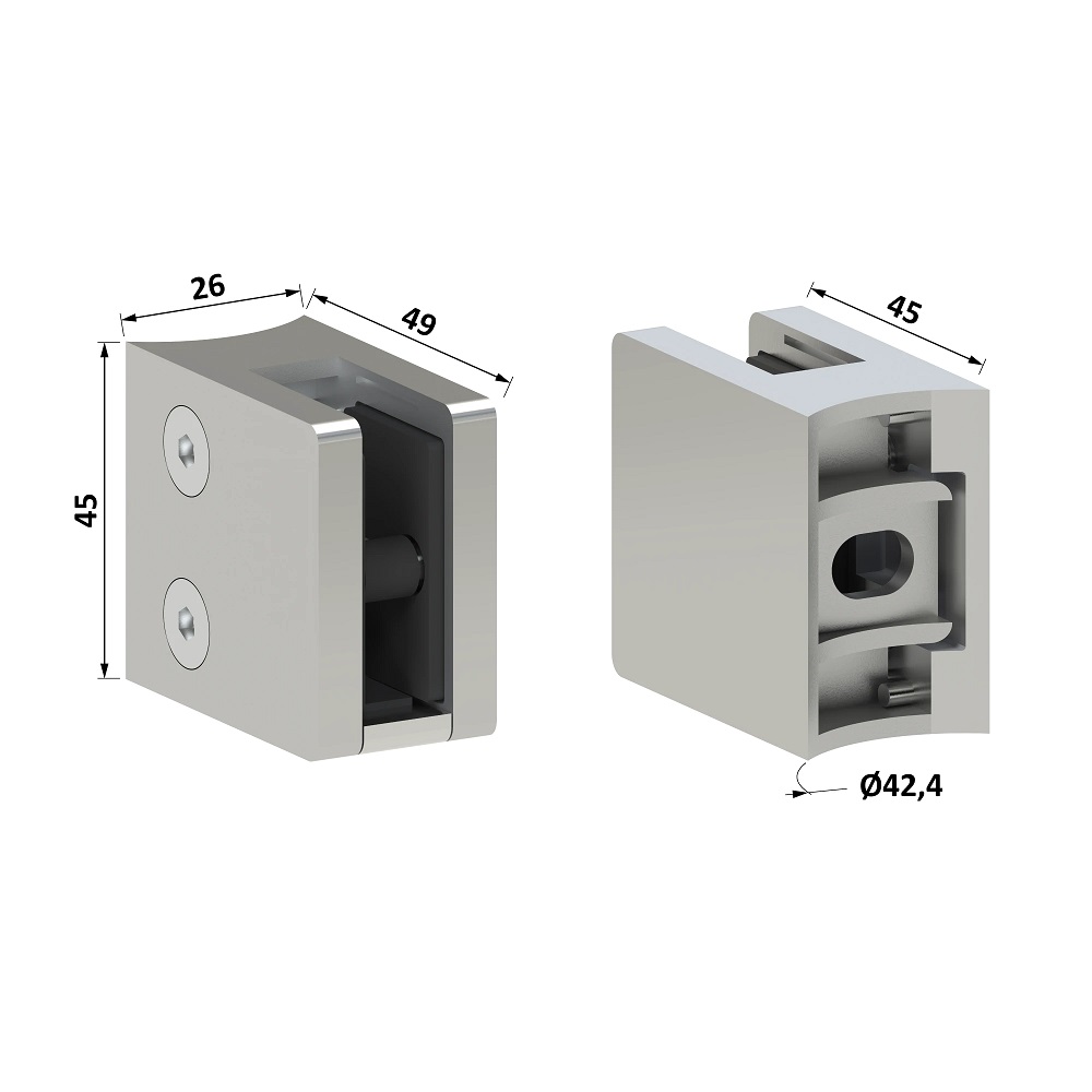 EL1-AP47 - svorka skla s vyjímatelnou podložkou, materiál leštěná nerez AISI304.