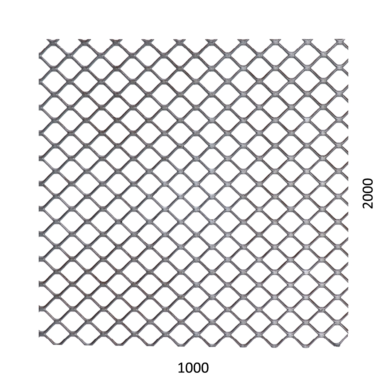Tahokov, čtvercová oka 20 x 15 mm, můstek 1,7 mm, Fe bez povrchové úpravy. Rozměr: šířka 1000 mm, výška 2000 mm, tloušťka 1,5 mm.