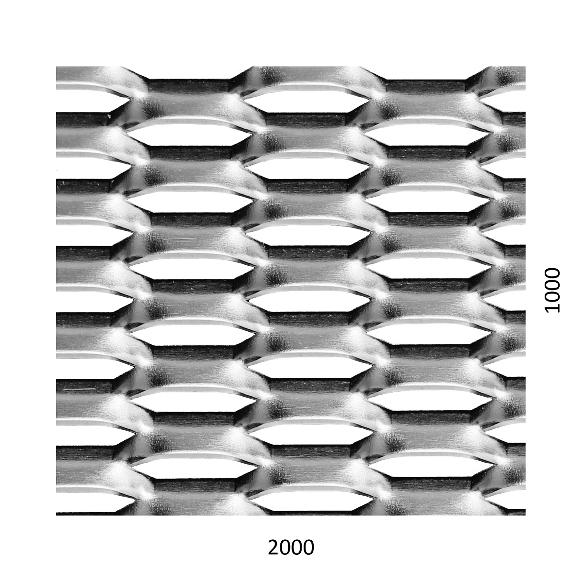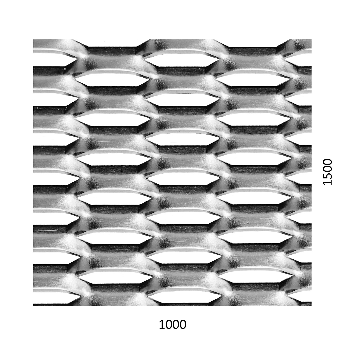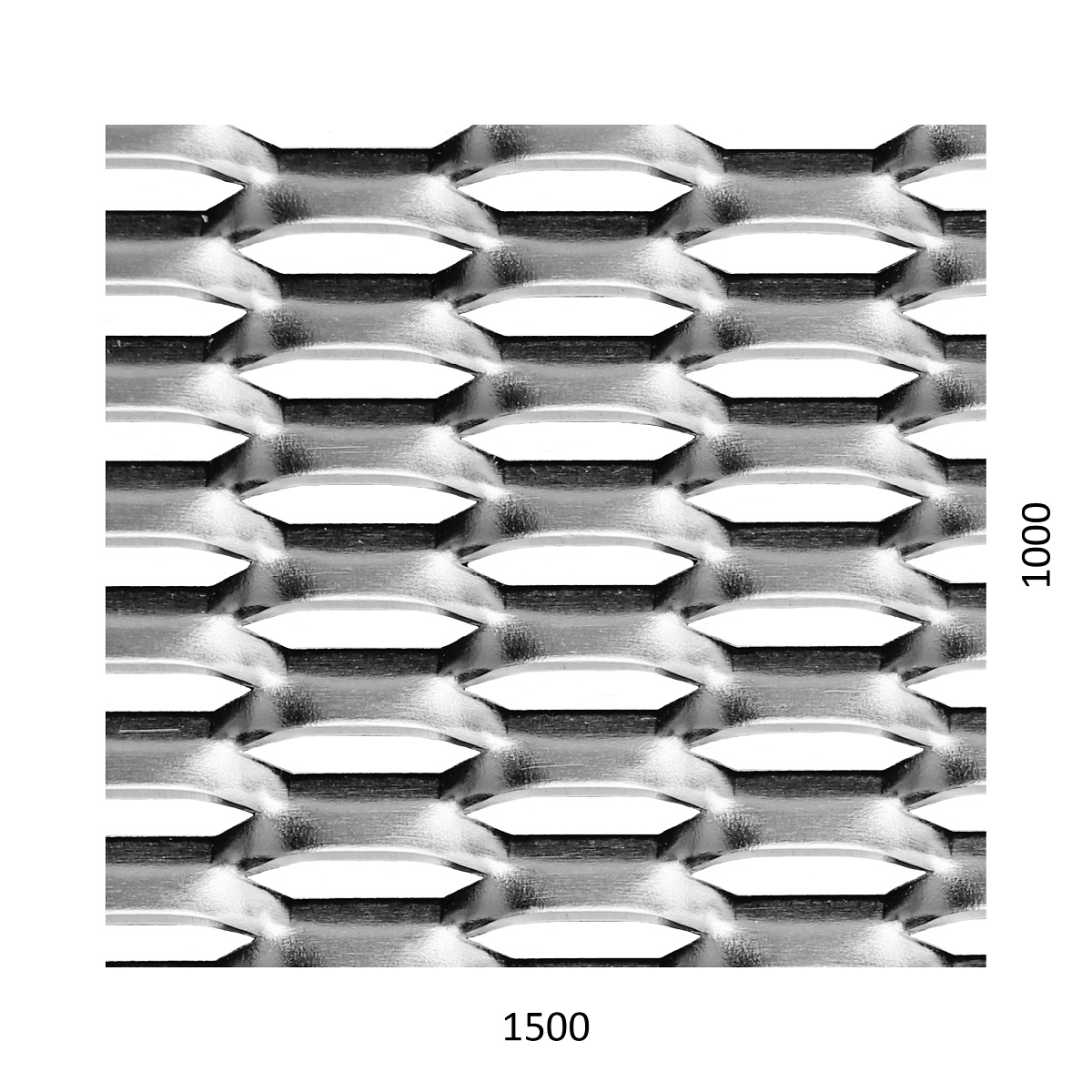 Tahokov, kosočtvercová oka 44 x 12 mm, tl. 1,5 mm, můstek 5 mm, perforace 16%, materiál pozinkovaná ocel. Rozměry viz varianty - šířka x výška x tl. plechu. Rozměr oka 44 mm je rovnoběžný se šířkou tabule (prvním rozměrem).