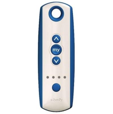 Telis 4 PATIO RTS - přenosný pětikanálový dálkový ovladač pro lokální ovládání až pěti zařízení (rolety apod.) nebo pro skupinový povel (ovládání více zařízení společně). Nárazuvzdorný, voděodolný. Kanál 1 - 4 se zpravidla používá pro ovládání jednotlivých zařízení, pátý kanál vysílá centrální povely. Snadná volba kanálu pomocí tlačítka a 4 kontrolek, při zvoleném pátém kanálu svítí všechny 4 kontrolky najednou. Tlačítka pro povely Nahoru, Dolů a Stop / my (mezipoloha). Napájení - knoflíková baterie 3 V.