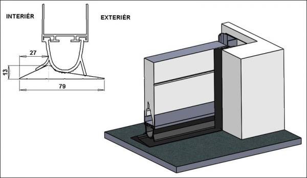 Těsnění na podlahu je pevný gumový tvarovaný profil 79 x 13 mm, který se nainstaluje v místě dosedání spodní těsnící gumy vrat. Vyrovná drobné nerovnosti podlahy, zlepší těsnění a zamezí zatékání vody. Profil se lepí na podlahu. Dodáváme v délce stavebního otvoru, bez lepidla. Vhodné lepidlo je třeba zajistit ve specializované prodejně dle materiálu podlahy. Materiál - černý EPDM.