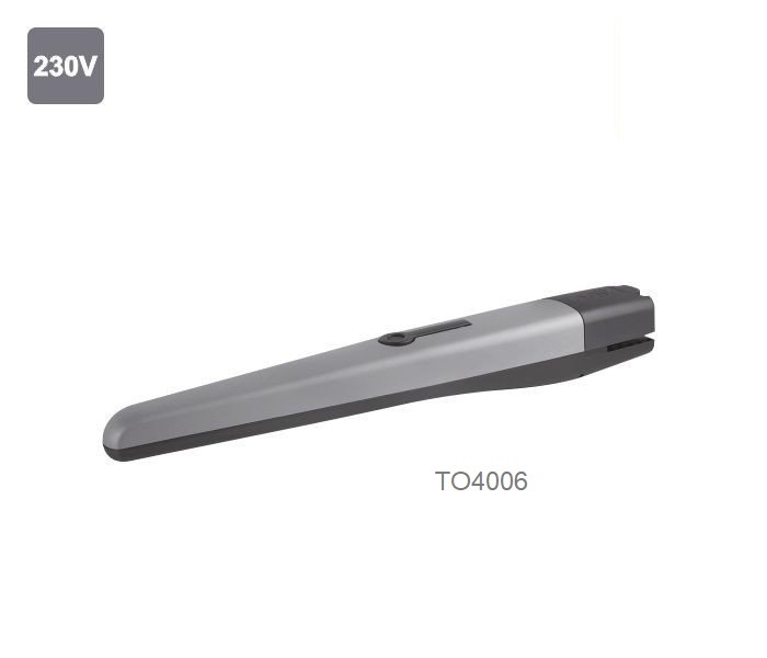 NICE TOONA TO4006 - samostatný 230V pohon (340W, 1800N) pro křídlové brány o šířce křídla do 3 m. Rychlost otevírání 16 cm/s. maximální úhel otevření 120°.