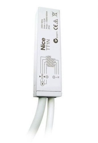 TT1L - řídící jednotka NICE se zabudovaným přijímačem pro dálkové ovládání osvětlení. Používá se pro osvětlení a zavlažovací systémy pracující s napájením 230 V s výstupním maximálním výkonem 500 W. Vestavěný přijímač dálkového ovládání s plovoucím kódem a frekvencí 433,92 MHz má paměť až na 30 vysílačů. 2 spínací časy, interní svorkovnice, IP55, velice malý rozměr 98 x 26 x 20 mm.