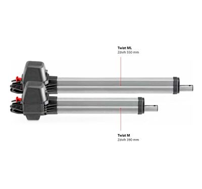 TWIST M - samostatný pohon SOMMER - náhradní díl k sadě pohonů Twist M 2-křídlý / 1-křídlý. Zdvih 390 mm. Maximální hodnoty na jedno křídlo brány: