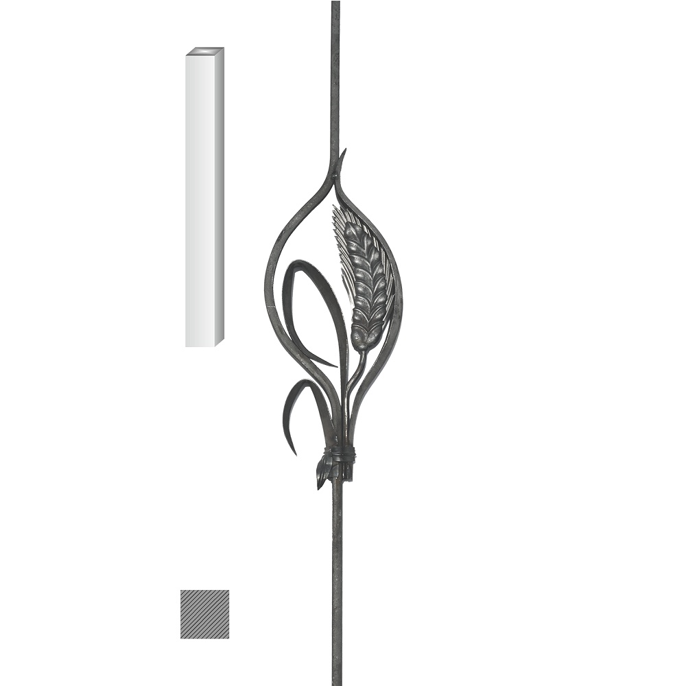 T045 - kovaná výplň zábradlí s ornamentem, tyč 950 x 195 mm, 12 x 12 mm, hladká ocel bez povrchové úpravy.