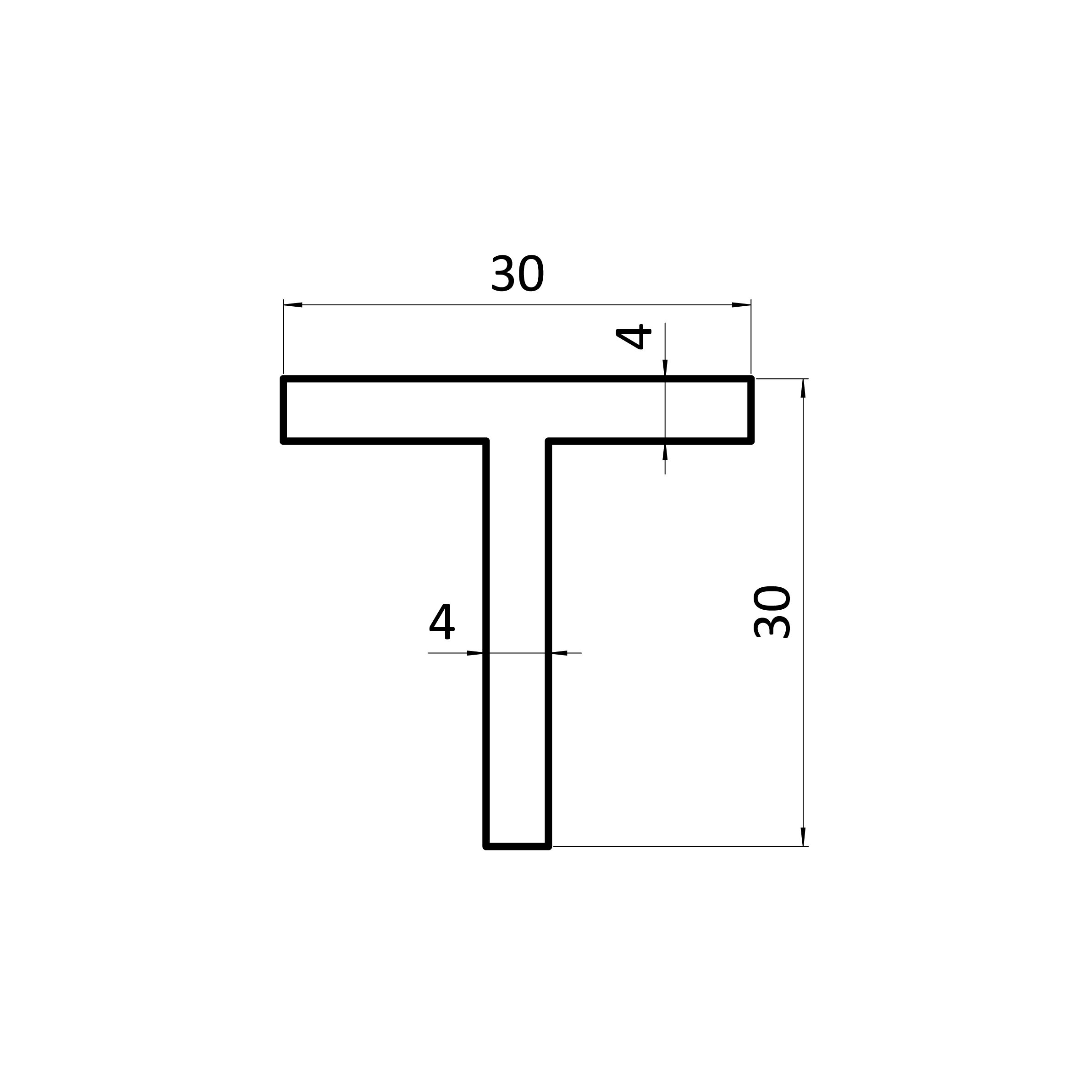 Ocelový profil průřezu "T" 30 x 30 x 4 mm, ocel S235 bez povrchové úpravy.