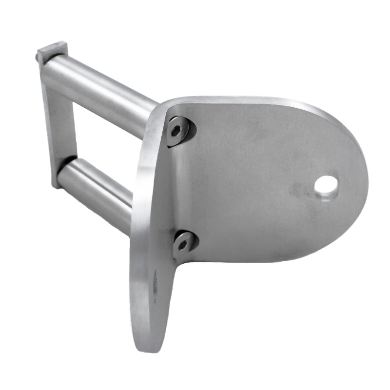 EB1-4548 - úchyt na vnější rohové kotvení sloupku ø 42,4mm, kotevní deska tl. 7 mm, ø 100 mm, broušená nerez K320 /AISI304.