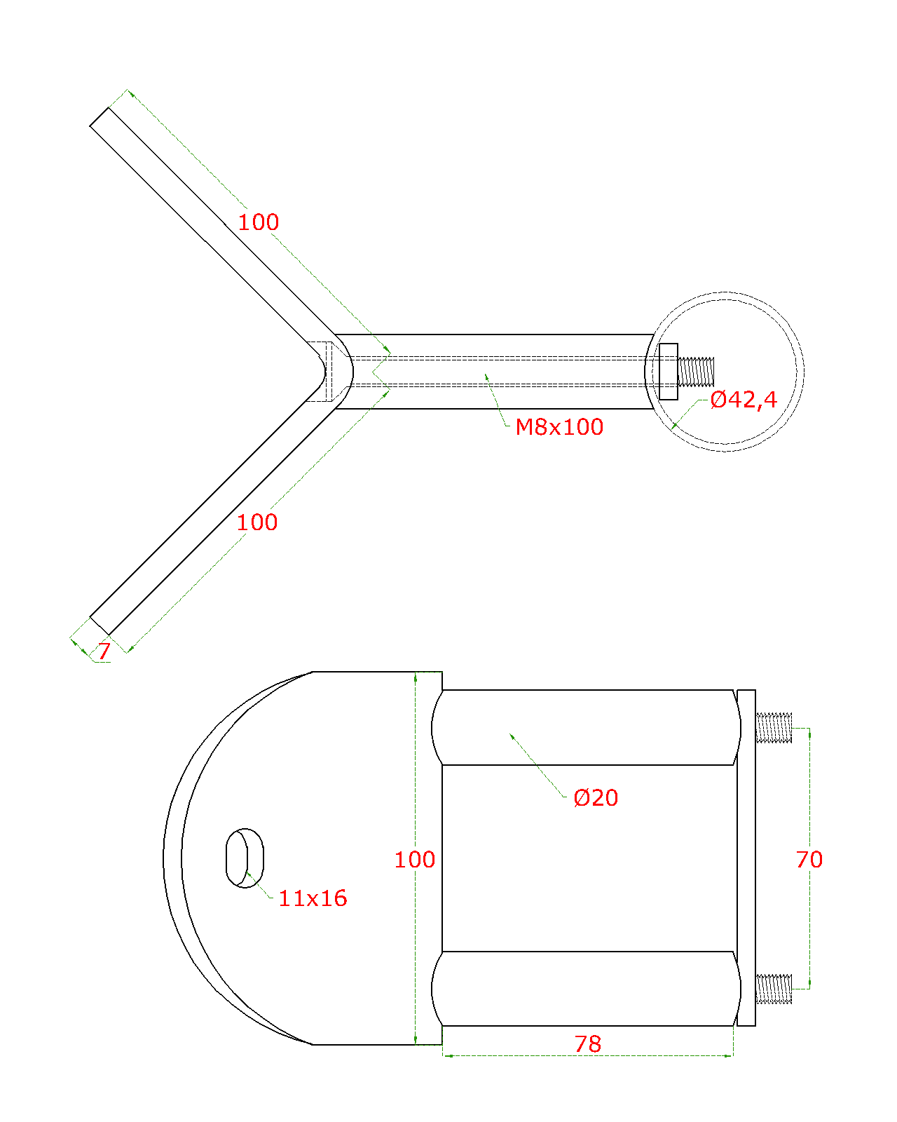 EB1-4548 - úchyt na vnější rohové kotvení sloupku ø 42,4mm, kotevní deska tl. 7 mm, ø 100 mm, brouše...Ukaž celý popis >
