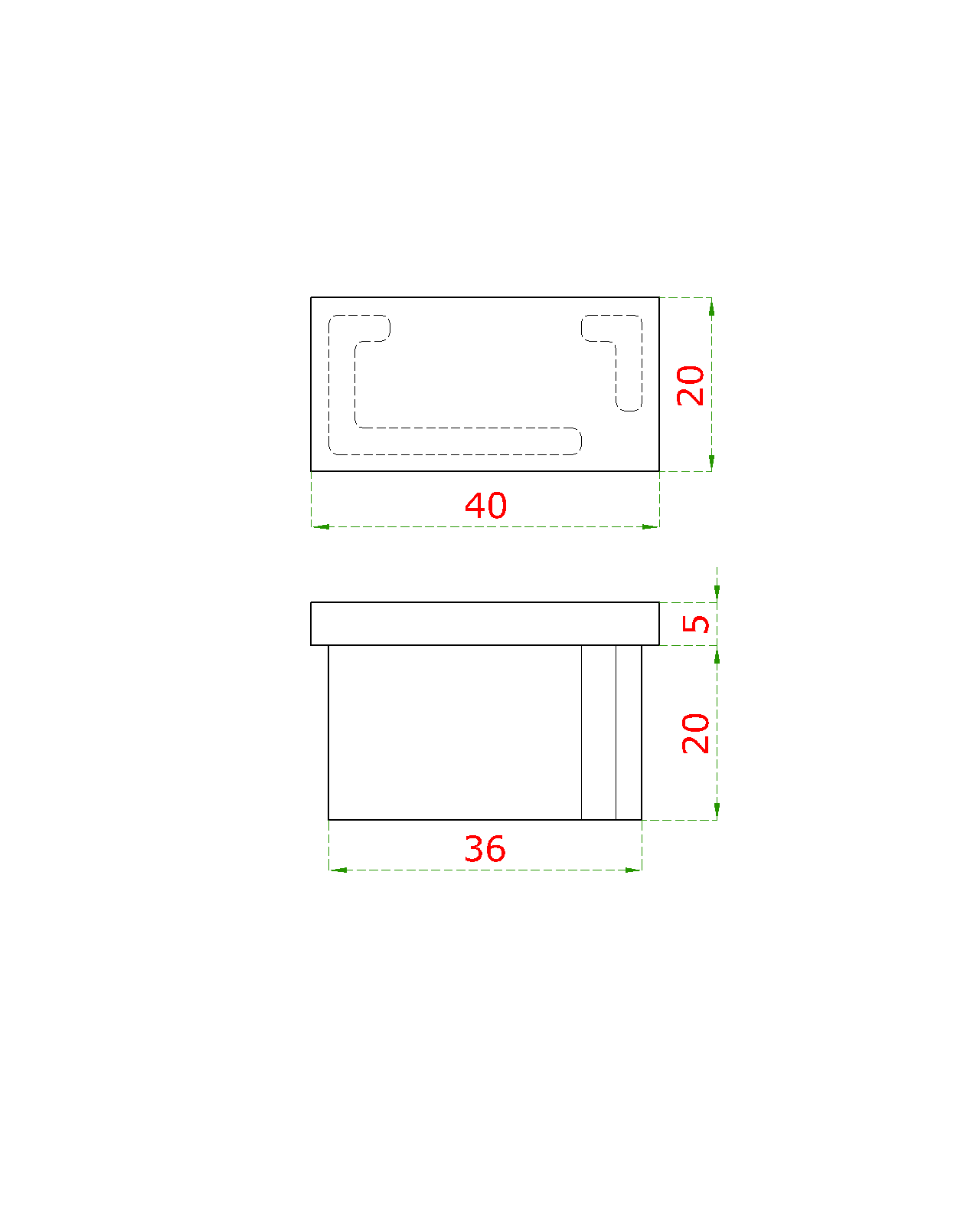 EB1-J422 - obdélníkové ukončení - záslepka 40 x 20 x 2 mm, materiál broušená nerez K320/AISI304. ...Ukaž celý popis >