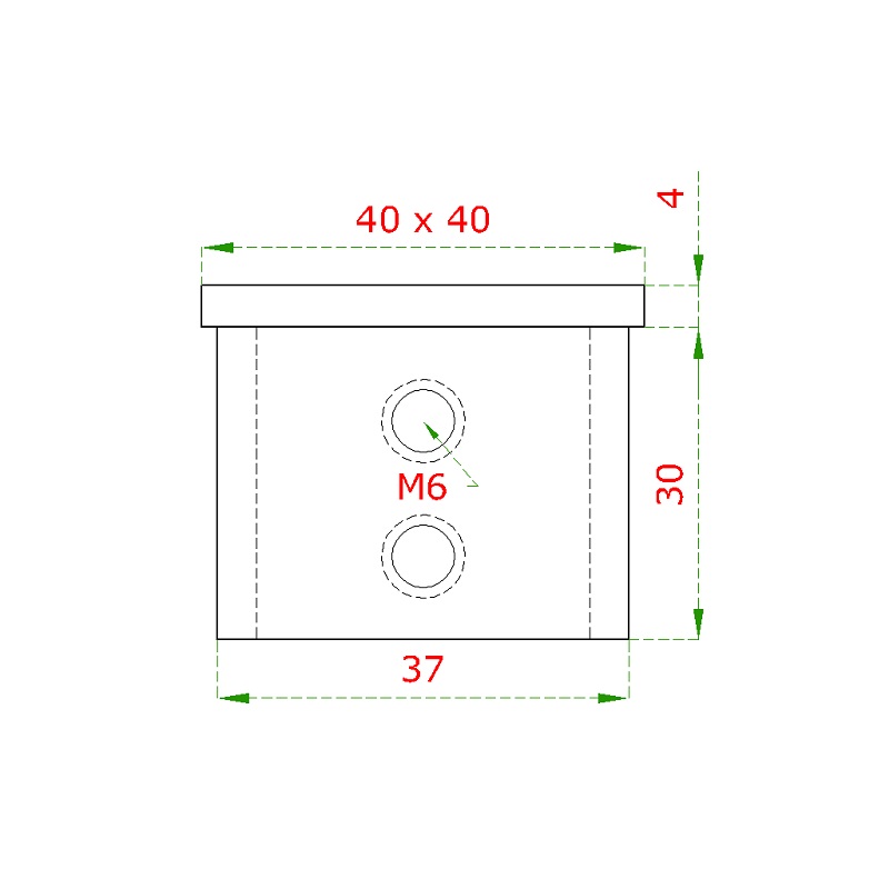Ukončení - zátka 40 x 40 x 1,5 mm na čtvercové madlo JHM40, lepený spoj, materiál broušená nerez K32...Ukaž celý popis >
