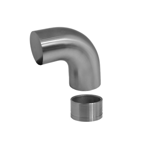EB1-ND42 - ukončovací oblouk s mezikusem ø 42 mm, úhel 90°, vhodný na dřevěné madlo EDB-S, broušená nerez K320/AISI304.