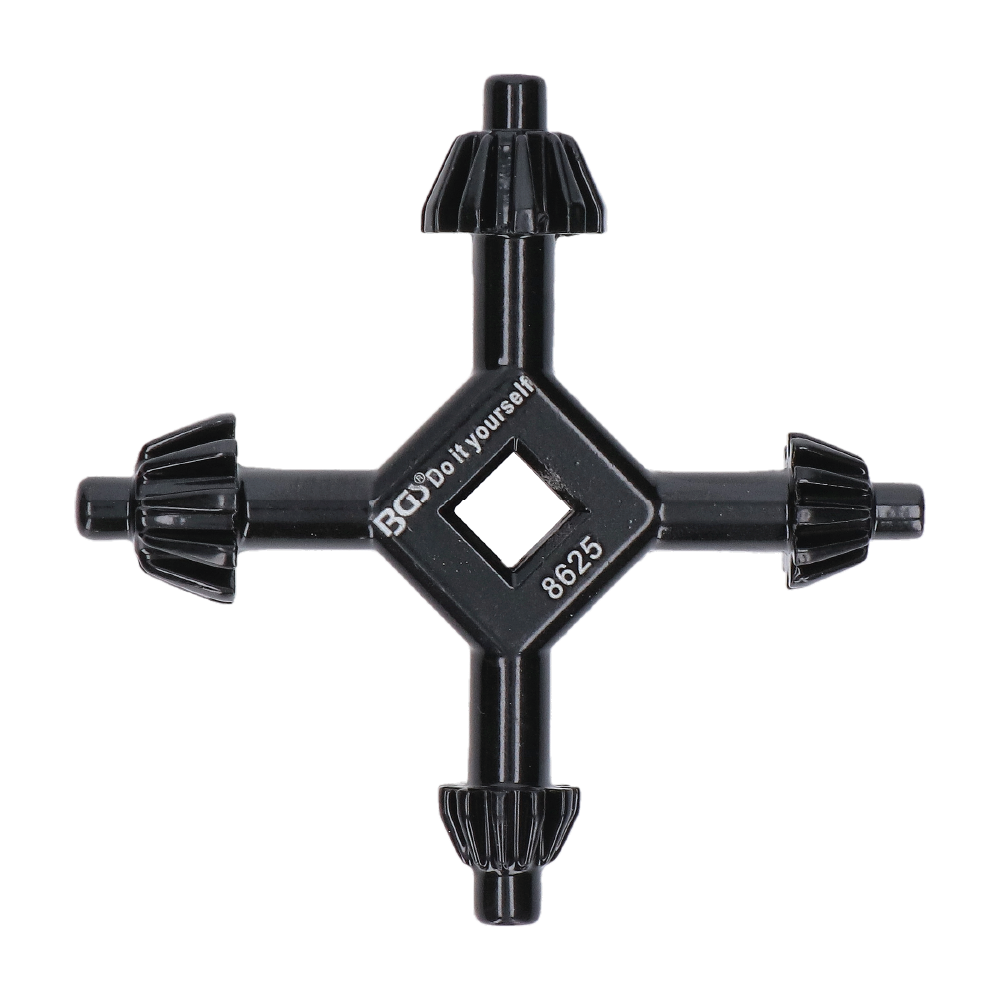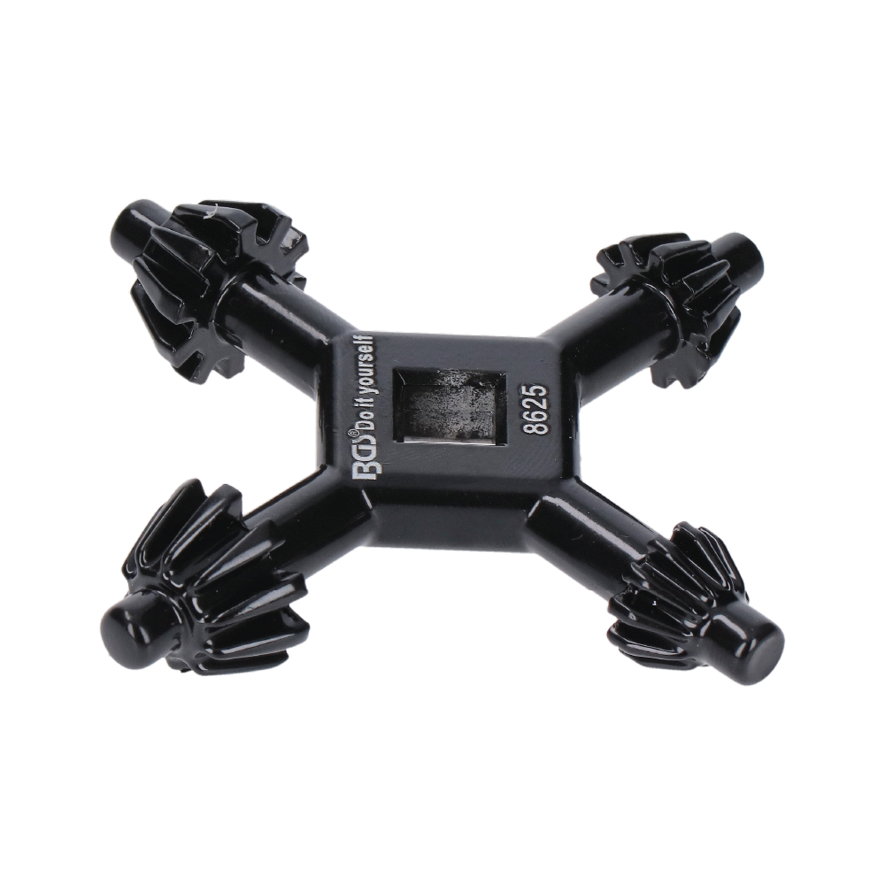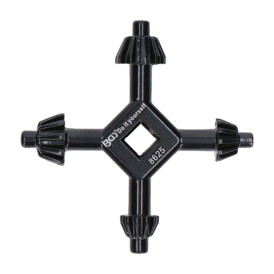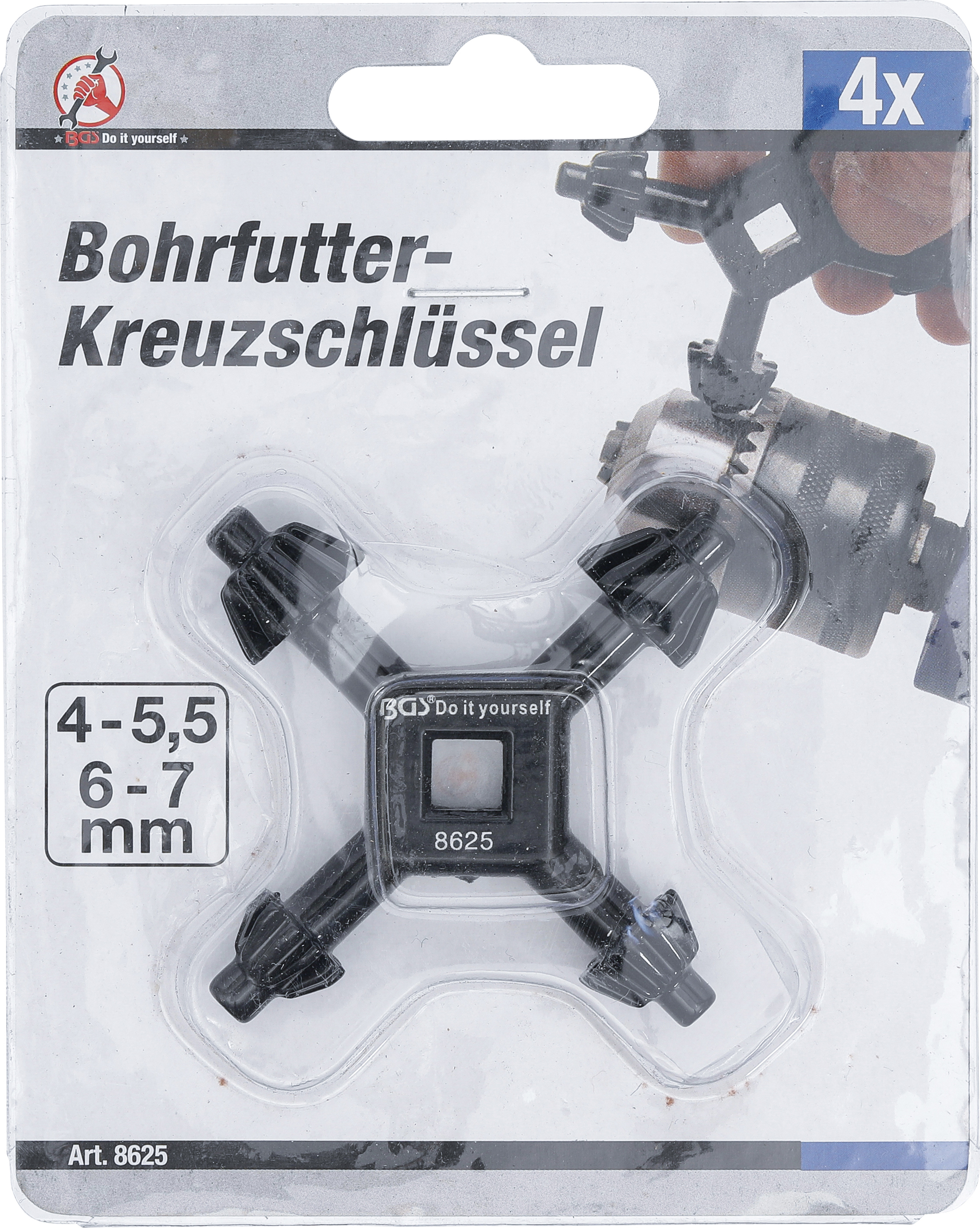 Univerzální křížový klíč na sklíčidlo vrtačky vhodný pro zubová sklíčidla většiny výrobců ( AEG, Bosch, Skil, Black & Decker, Makita, Milwaukee atd.). Průměr čepu 4 - 5,5 - 6 - 7 mm.