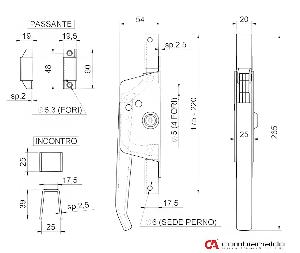 C391 - uzavírací pákový systém, délka 265 mm, na ovládací tyč 14 x 14 mm. Součástí je vložka a 3 klí...Ukaž celý popis >