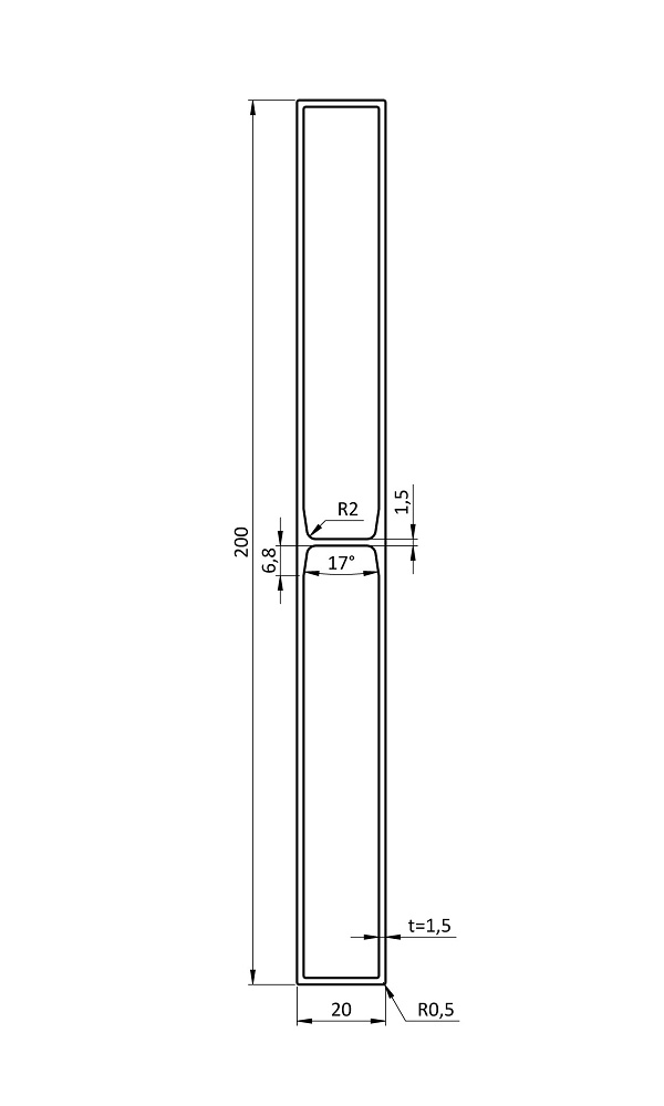 Hliníkový jekl, rozměr 200 x 20 x 1,5 mm, délka 6 m, materiál EN AW-6060 T66 - přírodní hliník bez povrchové úpravy, cena za kus.