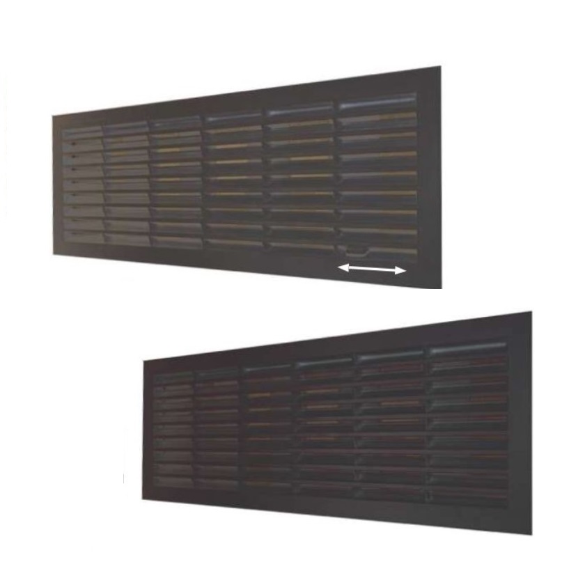 Větrací mřížka do vrat - dveřní větrací mřížka 337 x 131 mm uzavíretelná s nastavitelnou mřížkou, PŘEDNÍ DÍL, pro tl. panelu min. 35 mm, barva černá. Součástí mřížky je síťka proti hmyzu. Použití interier i exterier. Materiál plast ASA. Balení 1 pár.