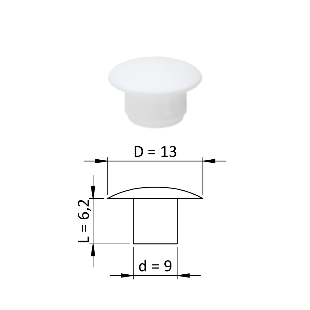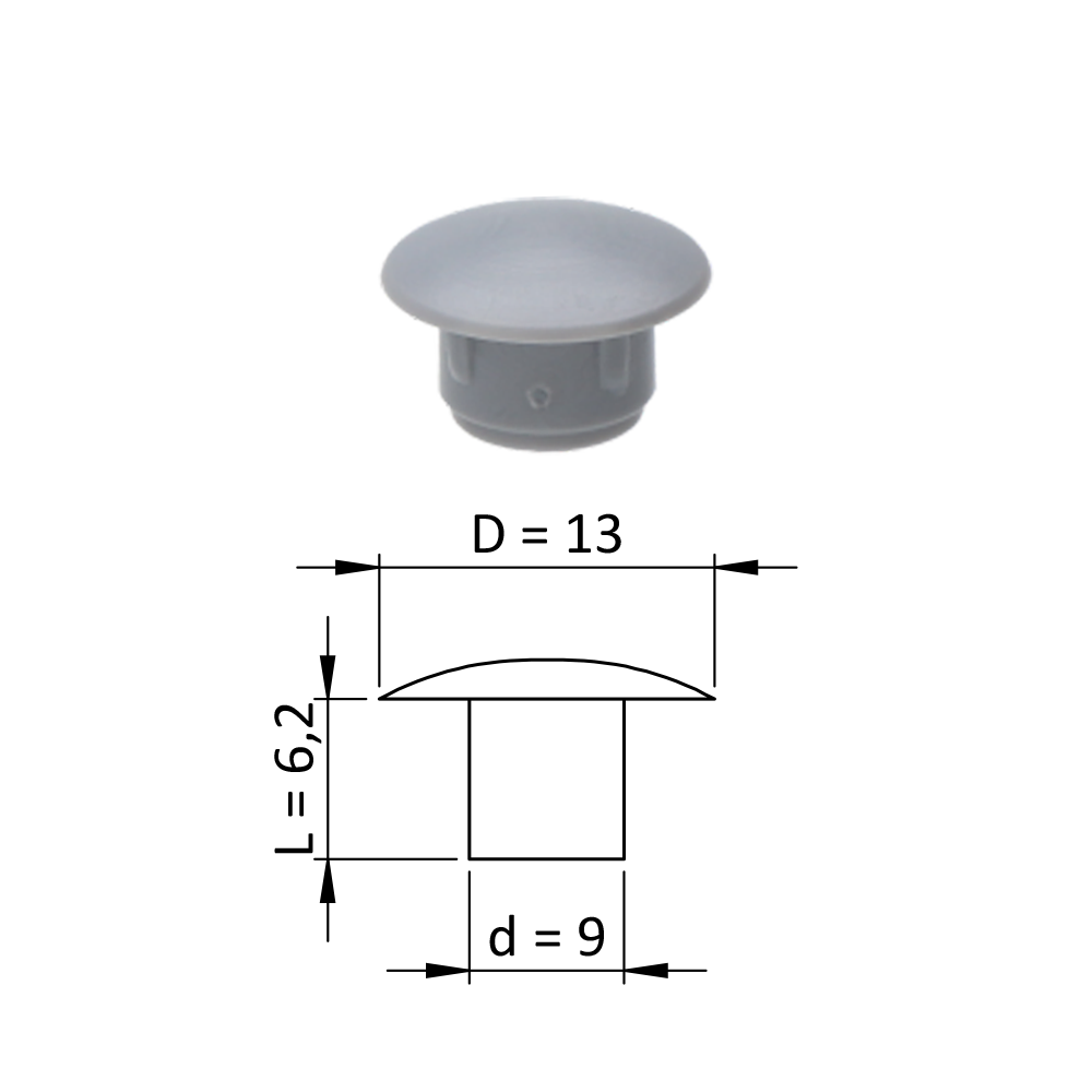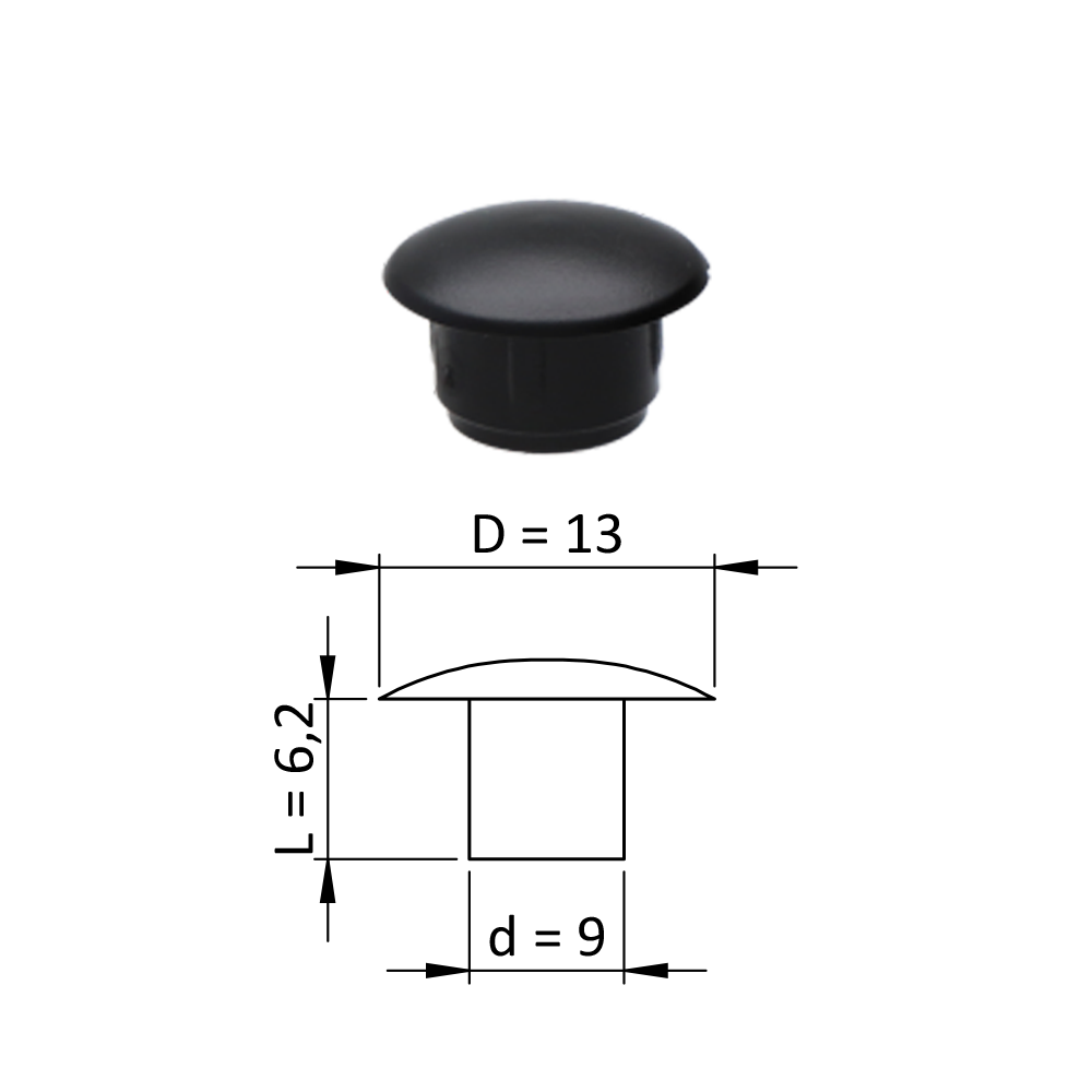 Vnitřní krytka plastová kulatá, otvor ø 9 mm. Dodáváme v barvách: černá RAL9005, bílá RAL9010, šedá RAL 7040.