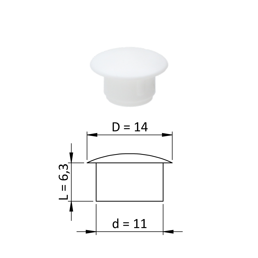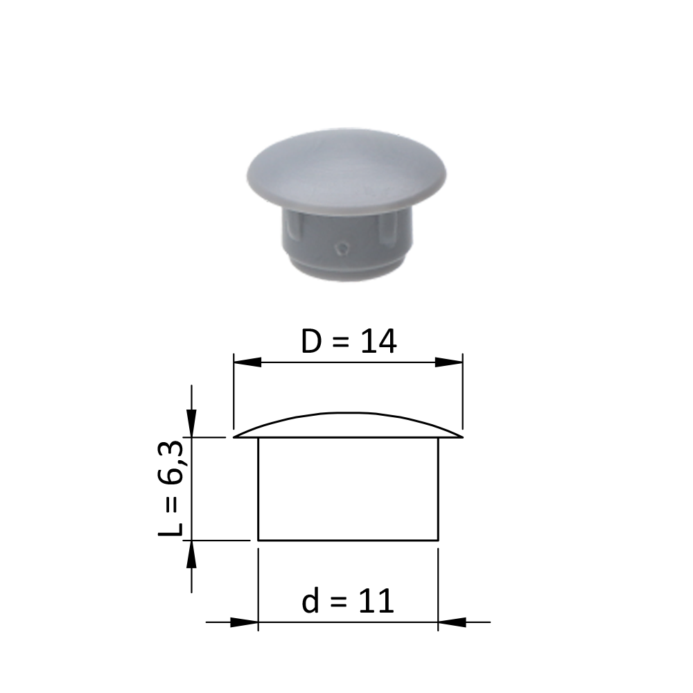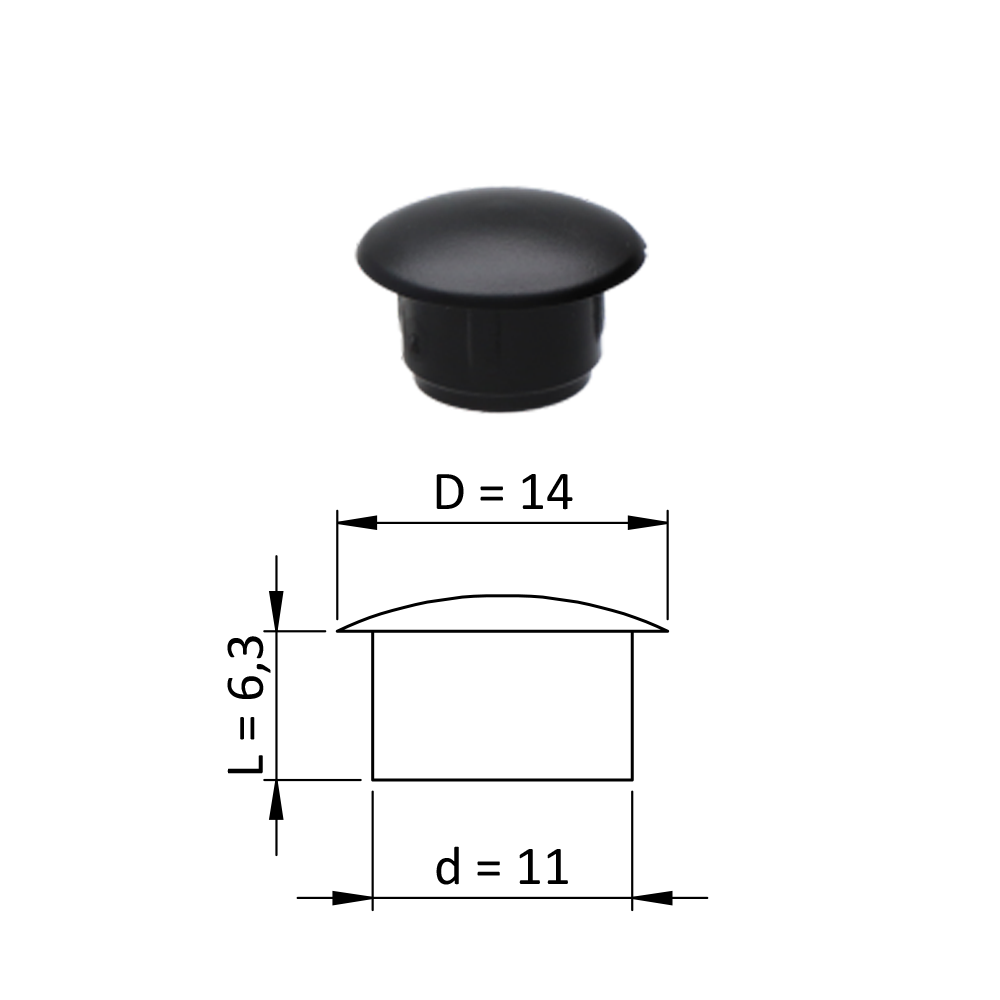 Vnitřní krytka plastová kulatá, otvor ø 11 mm. Dodáváme v barvách: černá RAL9005, bílá RAL9010, šedá RAL 7040.